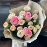 Этот потрясающий букет эмоций и нежности притягивает взгляд своей богатой палитрой чарующих оттенков и тонким ароматом. Кустовые розы, с изящно раскрывающимися пышными цветами, придают композиции игривость и легкость, а одноголовые розы добавляют изящества и элегантности. Каждый цветок является уникальным произведением искусства природы. Упаковка, украшенная изысканными деталями, подчеркивает драгоценность этого букета. Это настоящее проявление любви и заботы, идеальный подарок для особого случая или просто, чтобы подарить радость и улыбку.